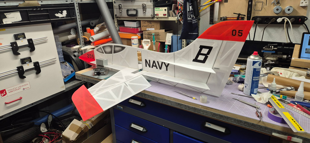 Heute ist er endlich fertig geworden. Der Erstflug findet dann nächsten Sonntag in der Halle statt. In der kommenden Woche werde ich noch ein paar SMD LEDs zur Beleuchtung anbringen.